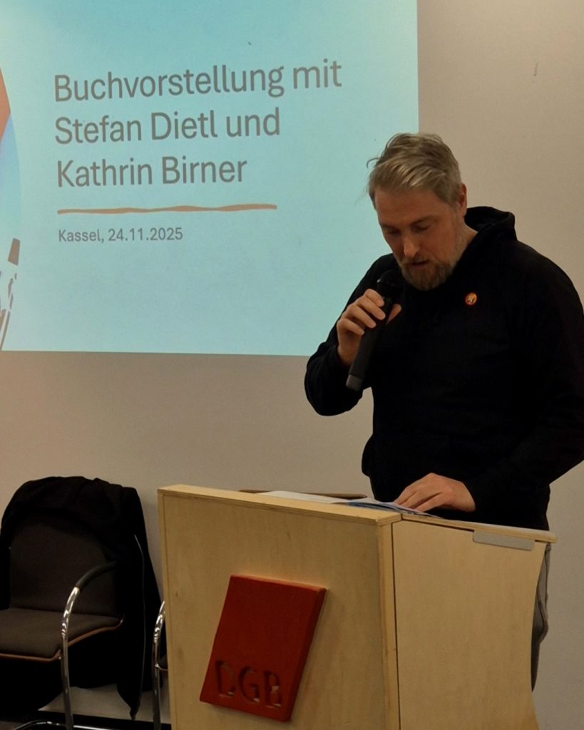 Der DGB Nordhessen, die DGB Jugend Nordhessen und die Vierstundenliga Kassel möchten euch gerne zur Premiere des unlängst im Unrast Verlag veröffentlichten Buches unserer Kolleg*innen Kathrin Birner und Stefan Dietl »Mehr Zeit zum Leben, Lieben, Lachen« einladen. Und zwar