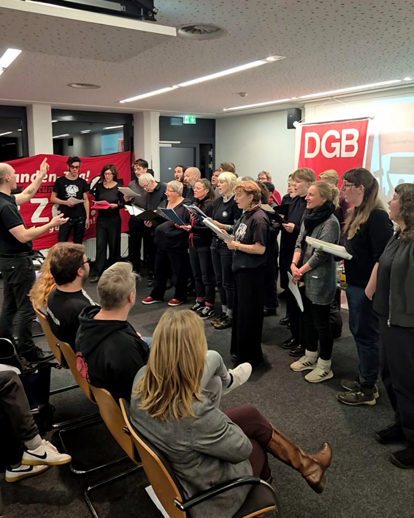 Ebenso werden Stimmen aus der Gewerkschaftsbewegung wie aus der 4-Stunden-Liga zu Wort kommen. Musikalisch untermalt wird das Ganze durch den Arbeiter*innenliederchor Kassel.